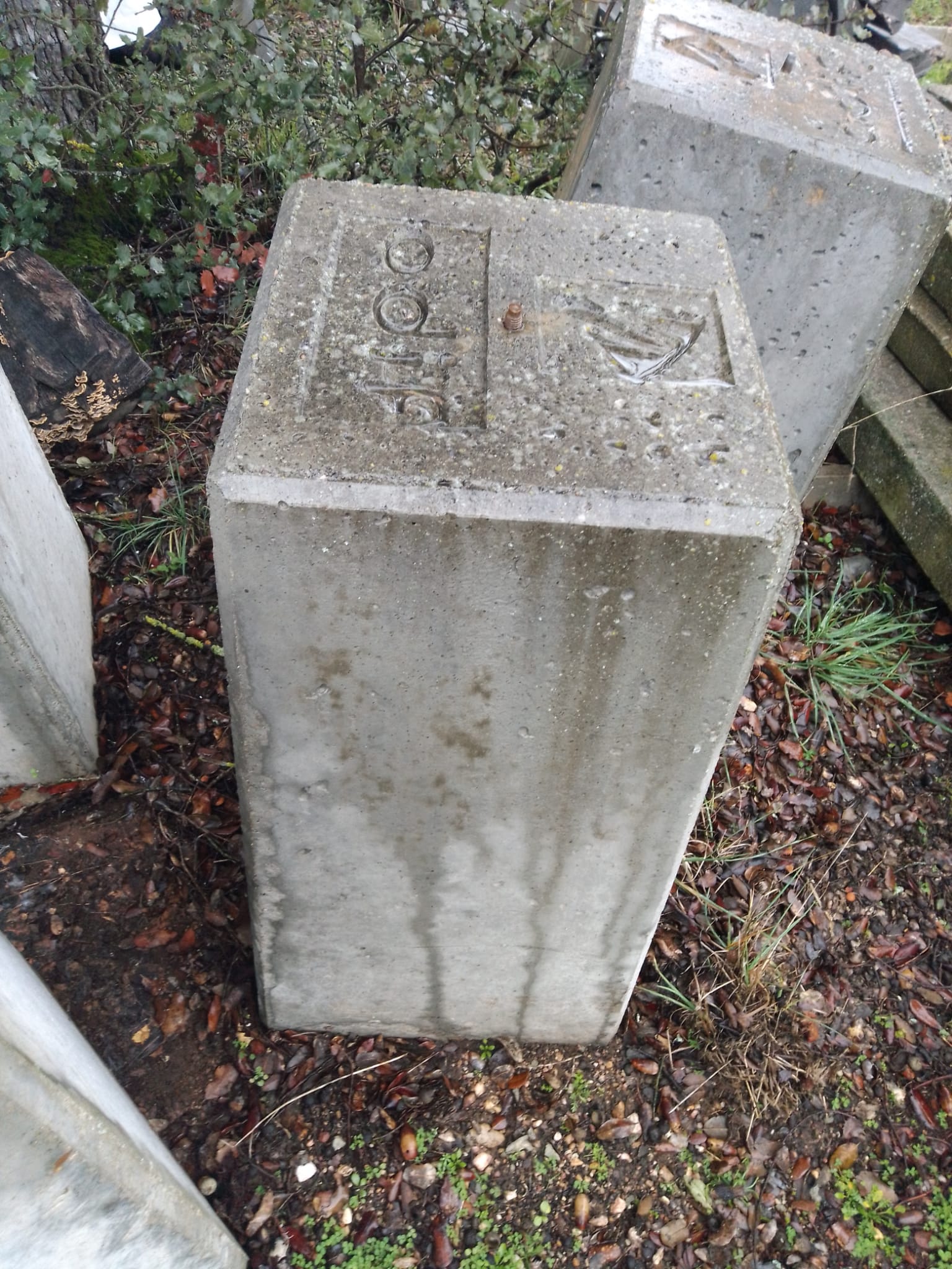 Hitos de hormigón de forma trapezoidal Hitos de hormigón de forma trapezoidal de 1 m o 1,5 m de altura. Se pueden pintar o grabar.